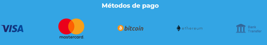 Puedes pagar BitOFHeaven utilizando tu tarjeta de crédito o por medio de una transferencia bancaria, como medios de retiro puedes utilizar Bitcoins y Ethereum, enlazando tu monedero a tu cuenta.