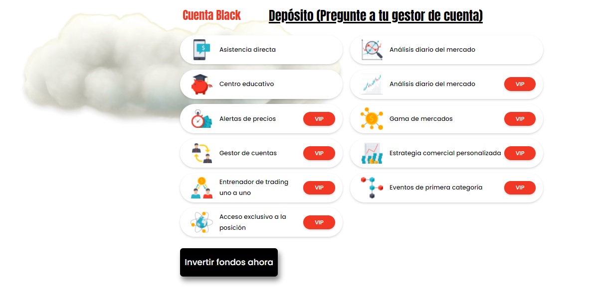 Como se mencionó anteriormente, una vez que los inversionistas obtienen acceso a esta cuenta, llegan a hacer uso de los servicios de nivel VIP en torno a las revisiones diarias del mercado, alertas diarias de precios, gerente de cuenta VIP dedicado, estrategias de negociación personalizadas, y un centro educativo.