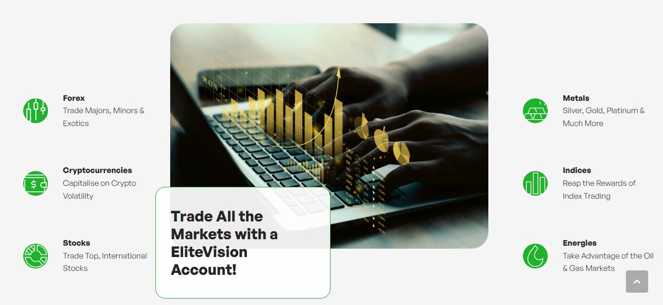 If you side with the EliteVision broker platform, then you’ll have access to an abundance of trading options from around the world. The teams have inducted assets from all major markets that are available for trading from any part of the world.