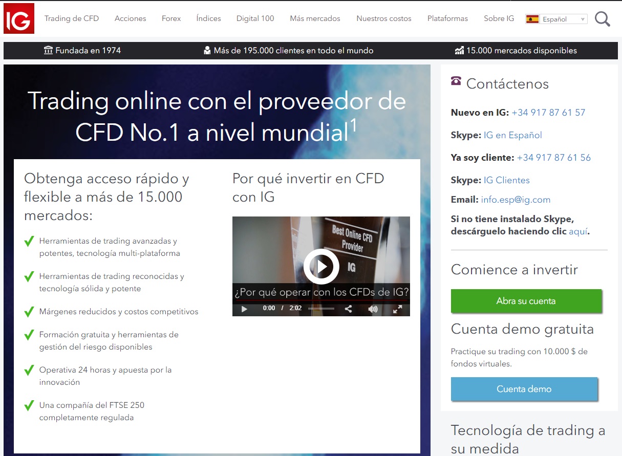 Según las últimas estadísticas del sitio web, el corredor tiene actualmente cerca de 200.000 clientes en muchos países del mundo. Cuando se trata del comercio de CFD, no es un error llamar a IG Group la mejor compañía del mundo. Ofrece la tranquilidad necesaria a sus comerciantes al ser un corredor regulado, bajo la supervisión de la ASIC (Comisión Australiana de Valores e Inversión). Una de las razones por las que los traders (comerciantes) adoran tanto su plataforma son los estrechos diferenciales; en algunas operaciones, el corredor cobra en forma de comisión sobre posiciones abiertas. Incluso las comisiones son muy asequibles.